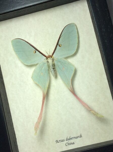 Description: Actias dubernardi female, the green and pink Chinese moon moth, is an extremely beautiful species of moon moth that originates from southern China. Real and uncommon long tailed female Chinese moon moth
