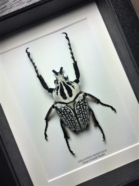 Description: Rare Very Large Goliathus flower scarab beetle. Goliathus beetles are among the most highly sought after insects and are also among the largest beetles in the world and very hard to obtain.
