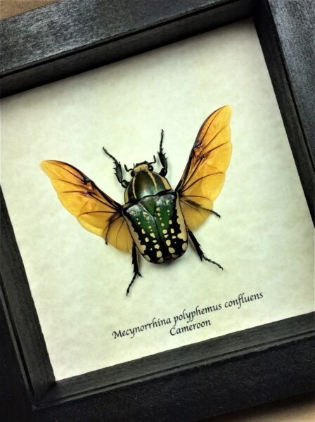 Description: Rarely offered hard to get large green scarab beetle commonly known as the Giant African Fruit Beetle from Cameroon.